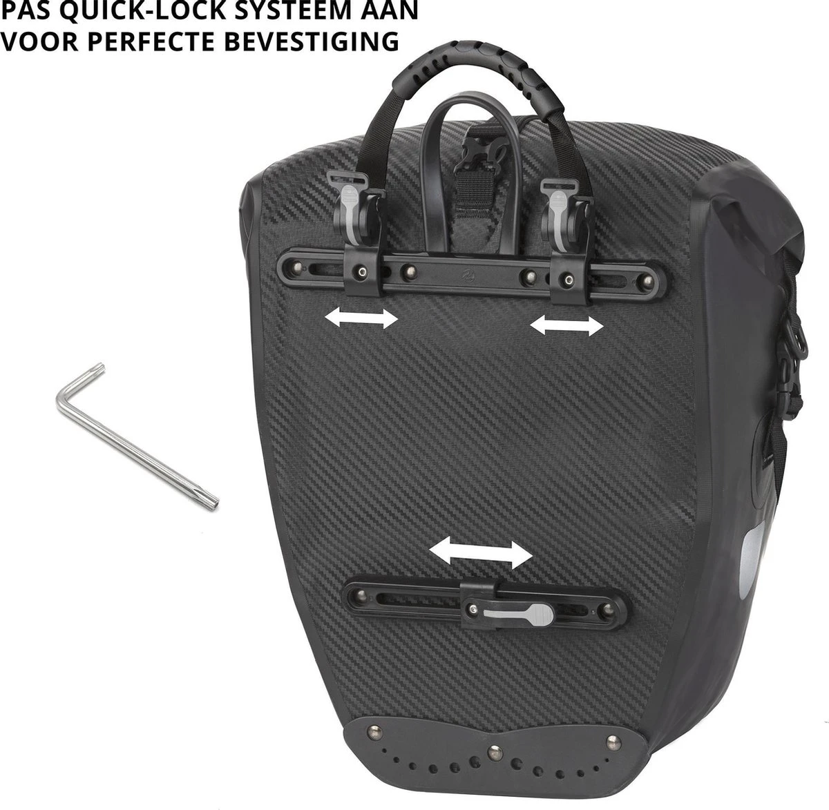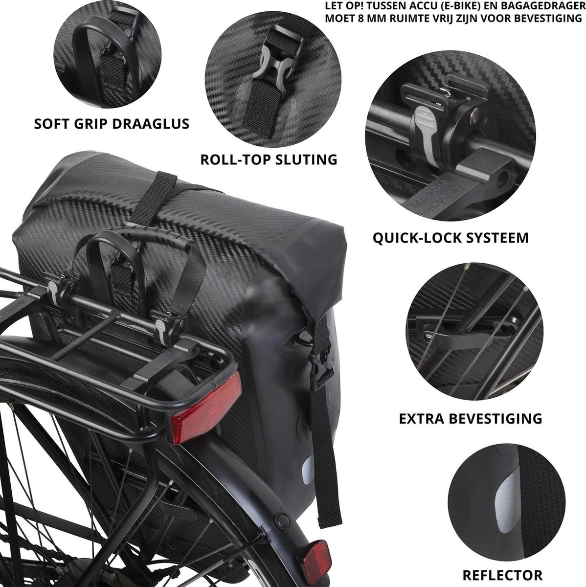 ► Quick-Lock systeem: heel makkelijk stevig te bevestigen aan iedere bagagedrager.