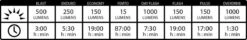 – Maximale brandduur: 87 uur op de FEMTO stand (15 Lumen)