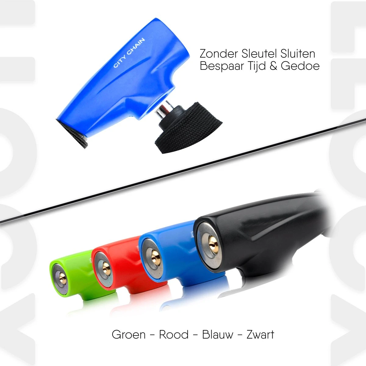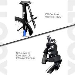 Extra veilig dankzij de dikke 6mm roestvrij gelegeerd stalen ketting, Zwitsers slot en sleutelgat beter bestand tegen blanco lopers door de 2 unieke Zwitserse sleutels. Makkelijk mee te nemen dankzij het gelegeerd aluminium staal = 1000gr. lichtgewicht.