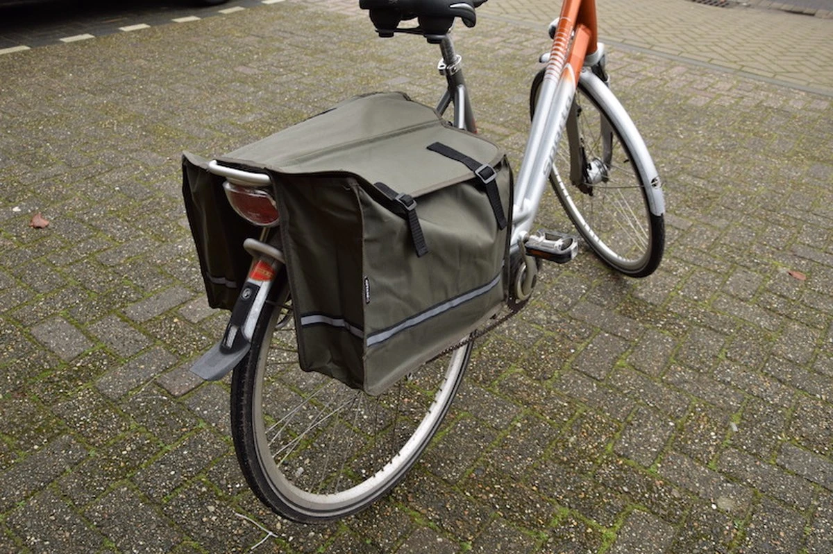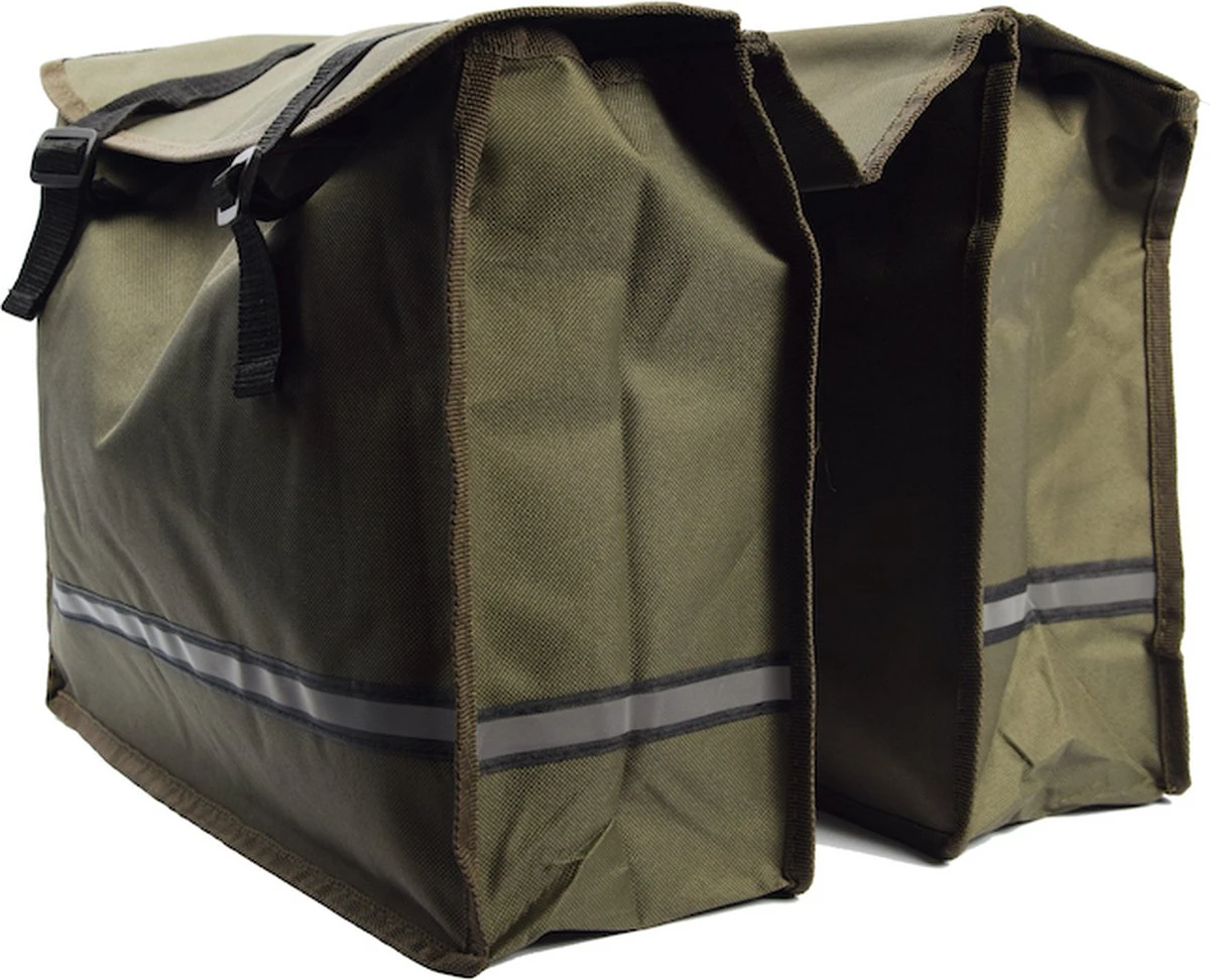 Dubbele fietstas donker groen, 15 liter. De fietstas bevat een reflectieband, wat de fietsveiligheid ten gunste komt. De fietstas kan makkelijk op vrijwel elke bagagedragen worden bevestigd. Afmetingen fietstas: 12 x 30 x 36 cm. De inhoud is ca. 15 liter. Fietstassen blauw.