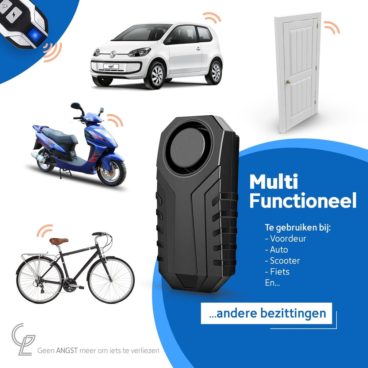 Naast je fiets of e-bike is dit alarm ook geschikt voor auto’s, brommers, scooters en je huisdeur bijvoorbeeld. Ons fiets alarm werkt voor al jouw persoonlijke eigendommen die je niet kwijt wilt raken.