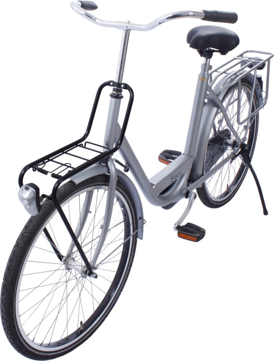 Deze stoere en handige voordrager is eenvoudig voor op jouw fiets te bevestigen. Je bevestigt de voordrager eenvoudig aan de stuurpen en aan de as van jouw voorwiel. De voordrager heeft een beugel voor het bevestigen van een voorlicht.