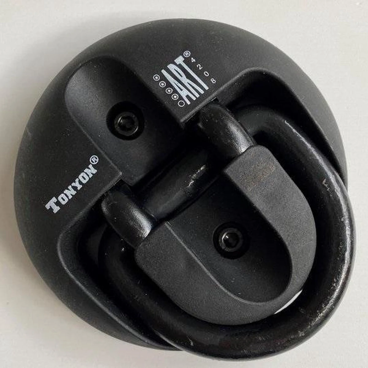 Zodra het muuranker aan de muur of vloer is bevestigd, kan deze makkelijk worden gebruikt, doordat de 14mm dikke beugel opklapbaar is en een groot gat (6 x 4,3 cm) heeft voor een dikke ketting of een dikke kabel.
