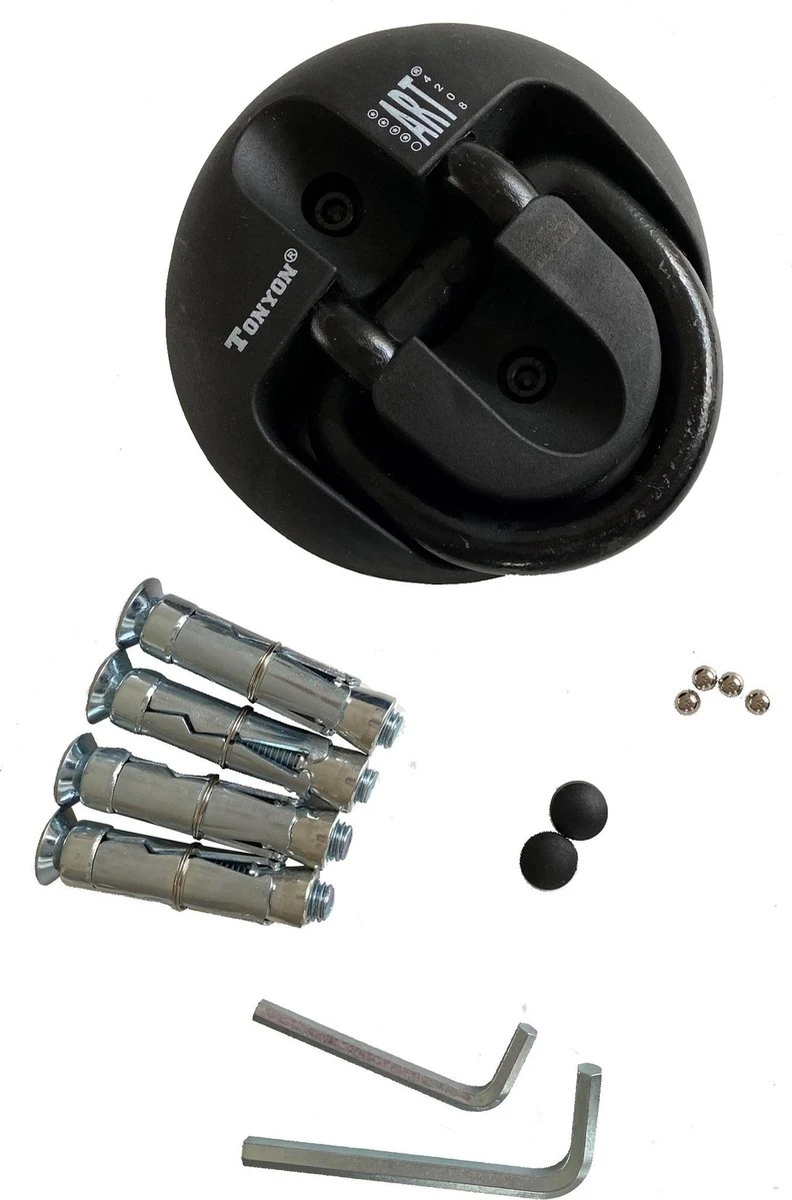 Het Tonyon muuranker wordt geleverd met bevestigingsmateriaal dat bestaat uit 4 pluggen, 4 bouten en 4 zekeringskogels. Tevens wordt er een imbus sleutel meegeleverd. Het anker is makkelijk te bevestigen met meegeleverde instructies.