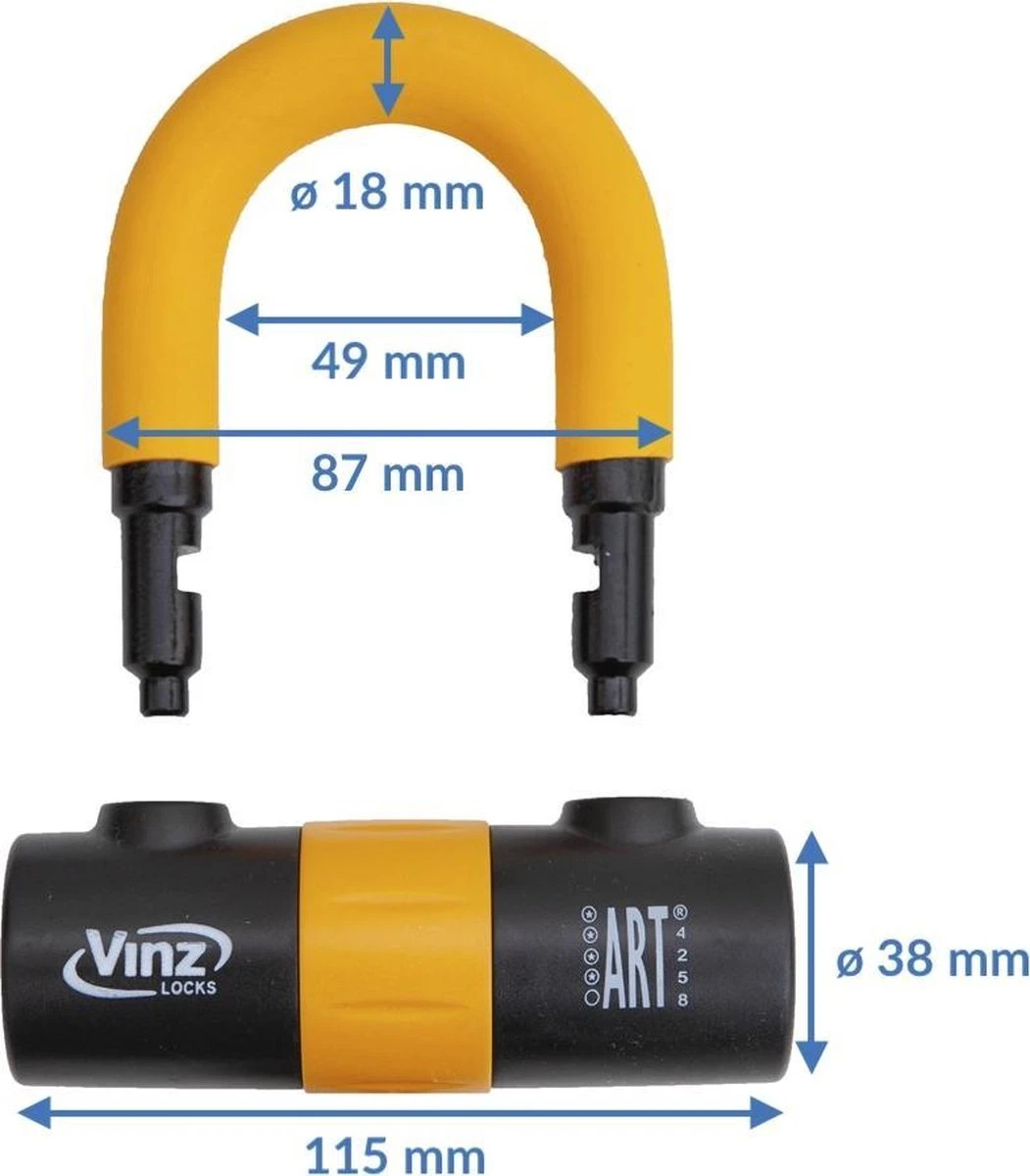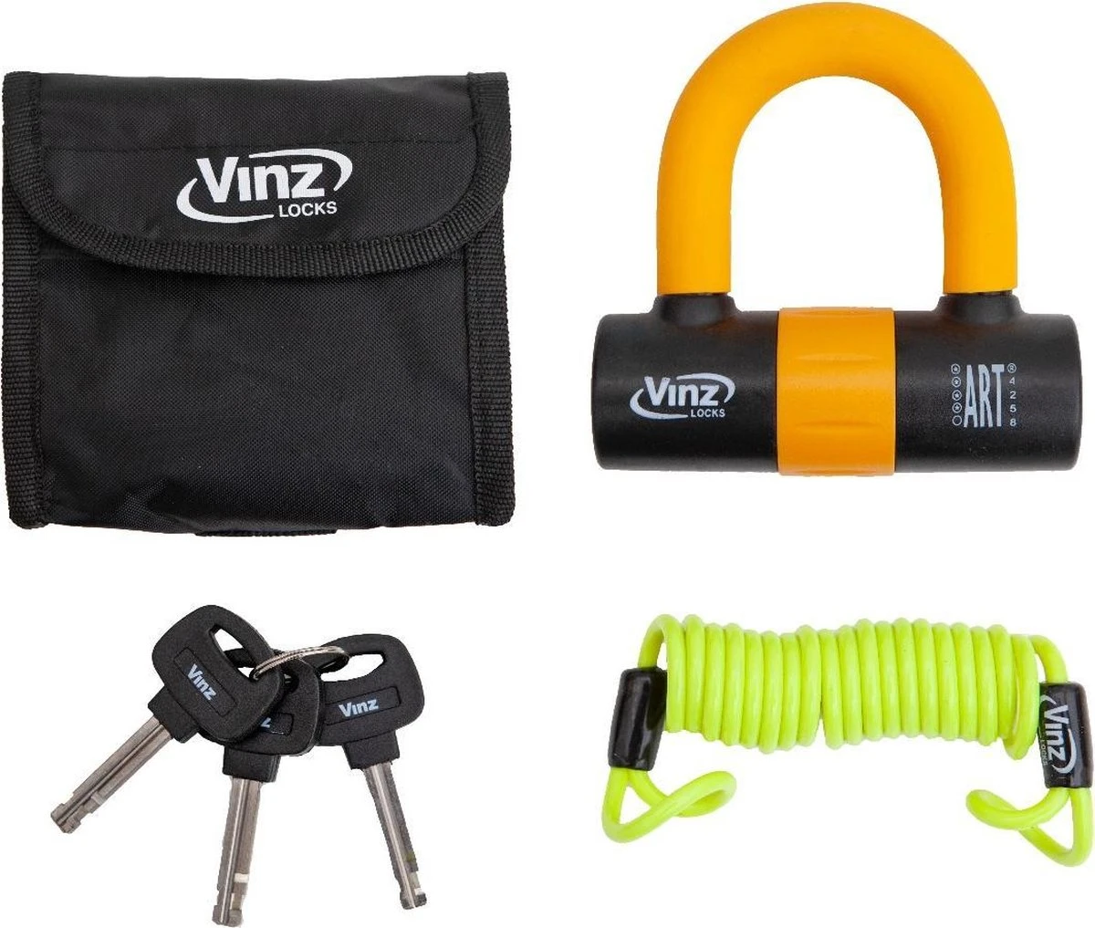 | Verpakkingsinhoud | VINZ Dinara Schijfremslot / Motorslot / Scooterslot ART4 – Oranje |
