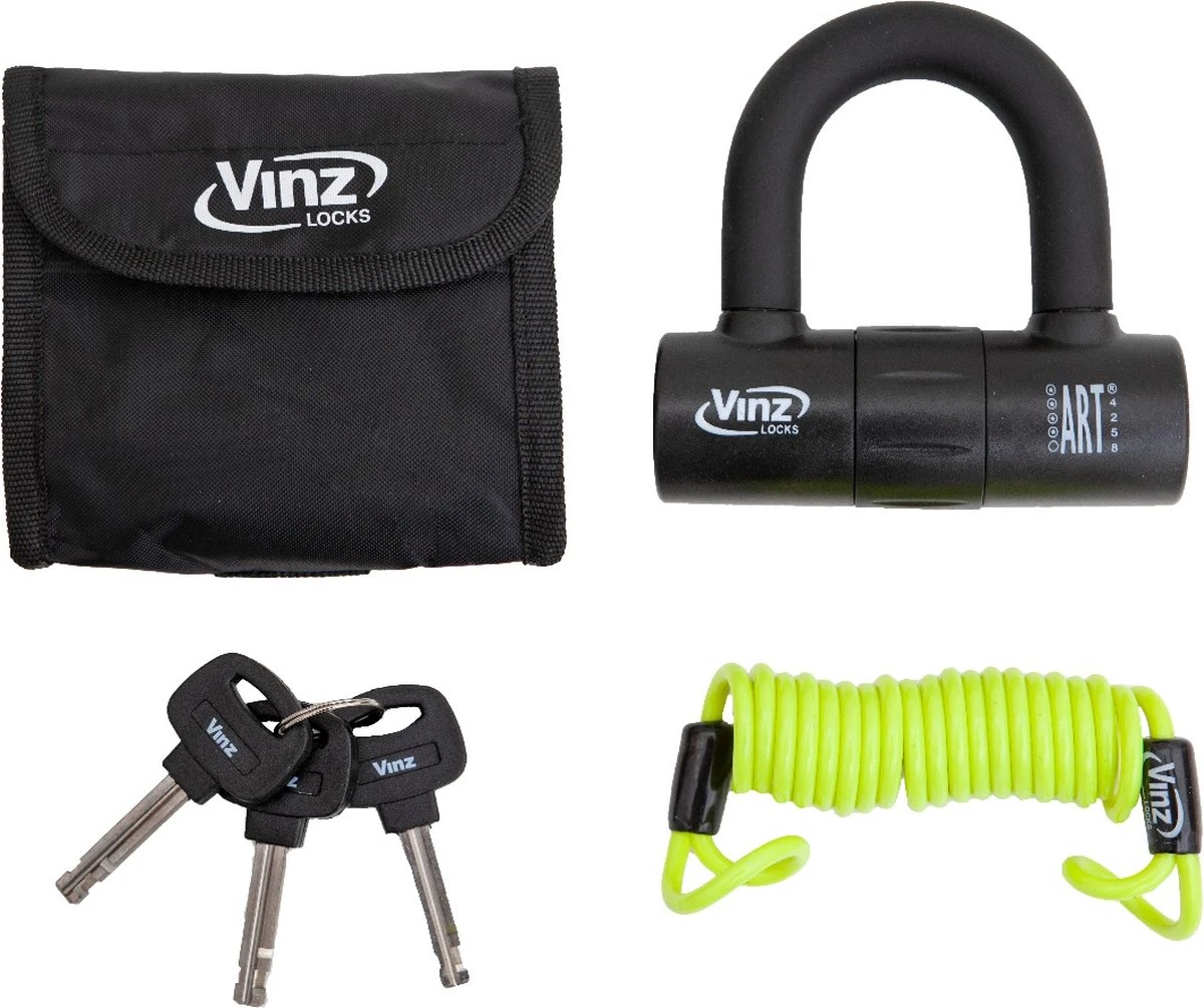 | Verpakkingsinhoud | VINZ Dinara Schijfremslot / Motorslot / Scooterslot ART4 – Zwart |