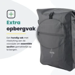 De tas heeft ook nog een handig voorvak. Hier kan u de kleine spullen in bewaren. Zo beschadigen deze spullen bijvoorbeeld niet als u het met andere spullen in de tas doet. Ook kan u kleine spullen zoals bijvoorbeeld sleutels eenvoudig weer vinden en hoeft u niet onderin de tas te graaien en te zoeken. Verder is veiligheid natuurlijk belangrijk en daarom is deze tas ook voorzien van reflectoren. Ten slotte heeft de tas een verstevigde achterkant waardoor de tas niet inzakt en dus ook niet tussen de spaken kunnen komen. Ook tijdens het dragen van de tas wordt dit als zeer handig ervaren omdat het voor meer stevigheid in de tas zorgt.